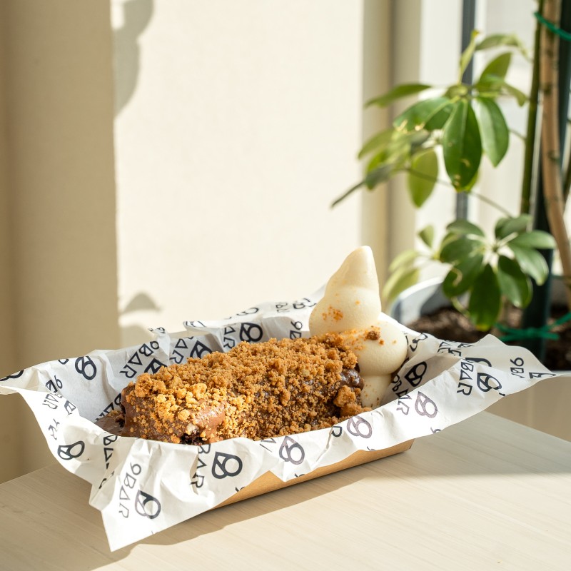 طبقات من البسكوت، الكراميل، الكيك، والكوكيز، يقدم بمذاق غني وتوازن مثالي